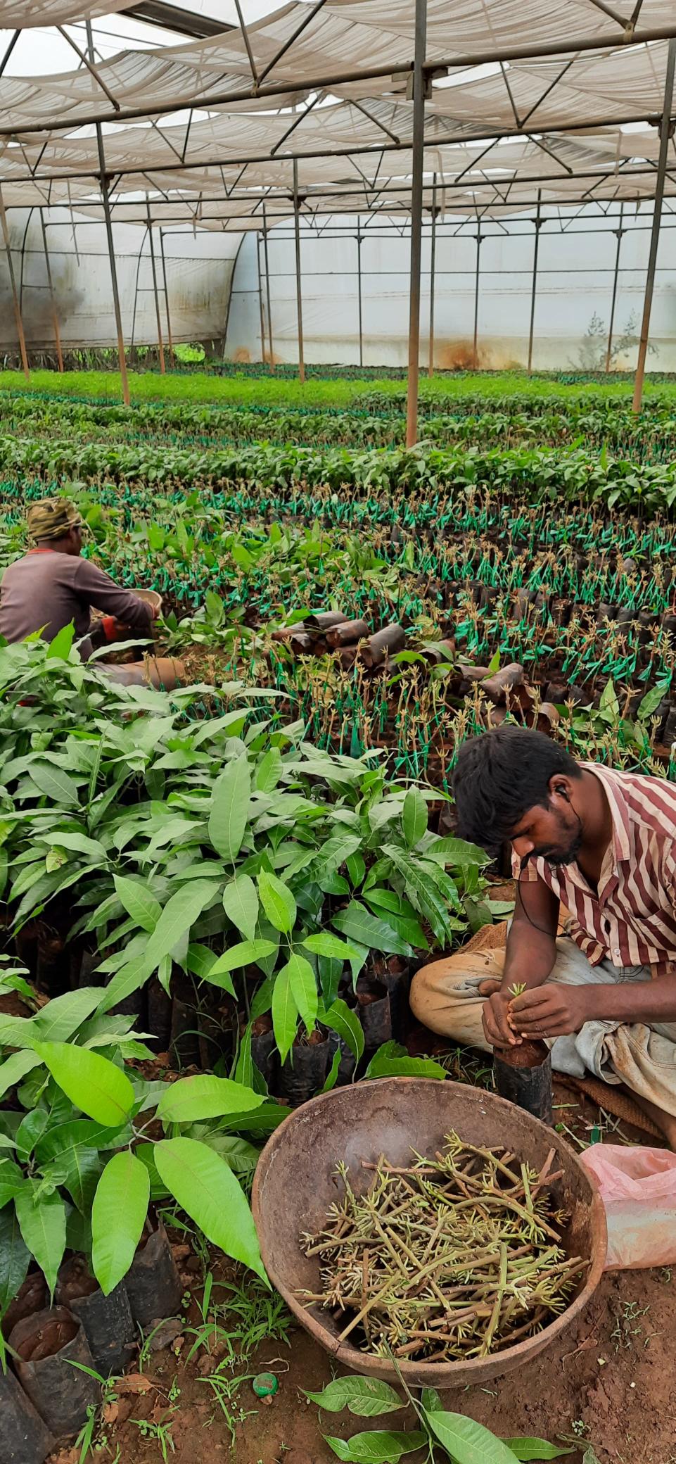 Our in-house grafting is performed with precision and care, using hand-picked mother plants to guarantee superior growth and long-term productivity for farmers.